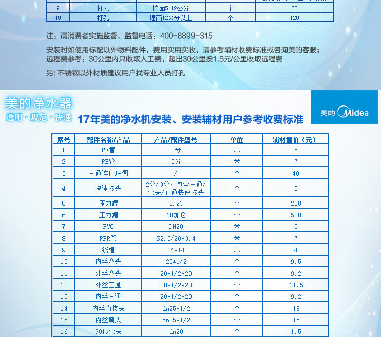 包裝清單"商用凈水機1臺; 使用說明書1本; 服務安裝單+客戶服務卡1份; 門鑰匙2把、調節支撐腳4個; 排水軟管1根; 4分波紋管1根; 排水管端蓋堵頭1個; 扎帶2根; 4分密封墊4個; 3角調溫鑰匙1把1 800G反滲透膜1支"